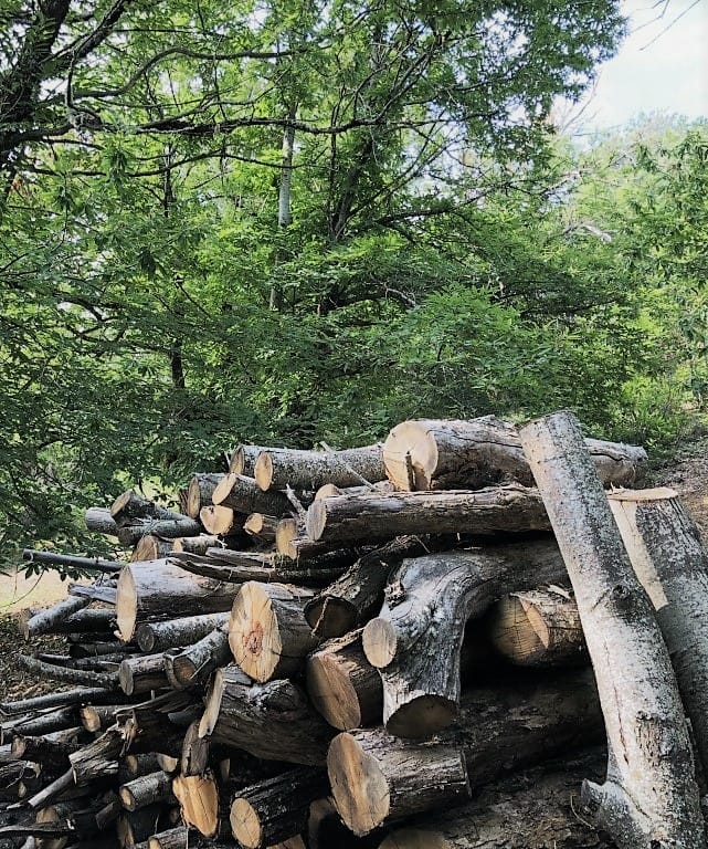 poda de castaño secando en la carpinteria para hacer agujas-Las hidalgas