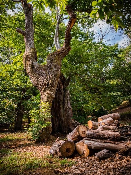 Poda castaño Corullón junto a castaño centenario-trazabilidad agujas de punto-made in slow-Las Hidalgas